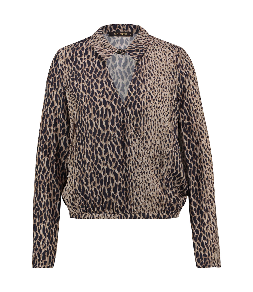 Blouse met omslag voorzien van een abstracte leopard print.